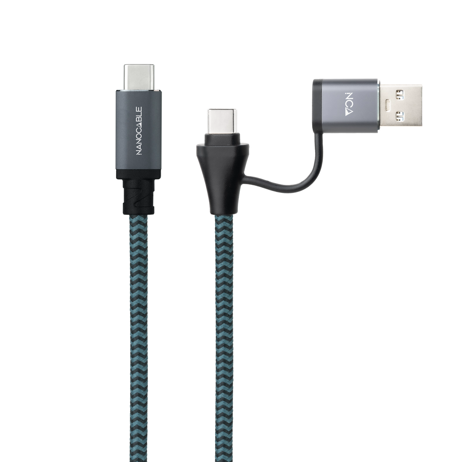 CABLE USB 3.2 GEN2x2 20Gbps 5A 100W, USB-C+USB-A/M a USB-C/M 1 M NEGRO NANOCABLE