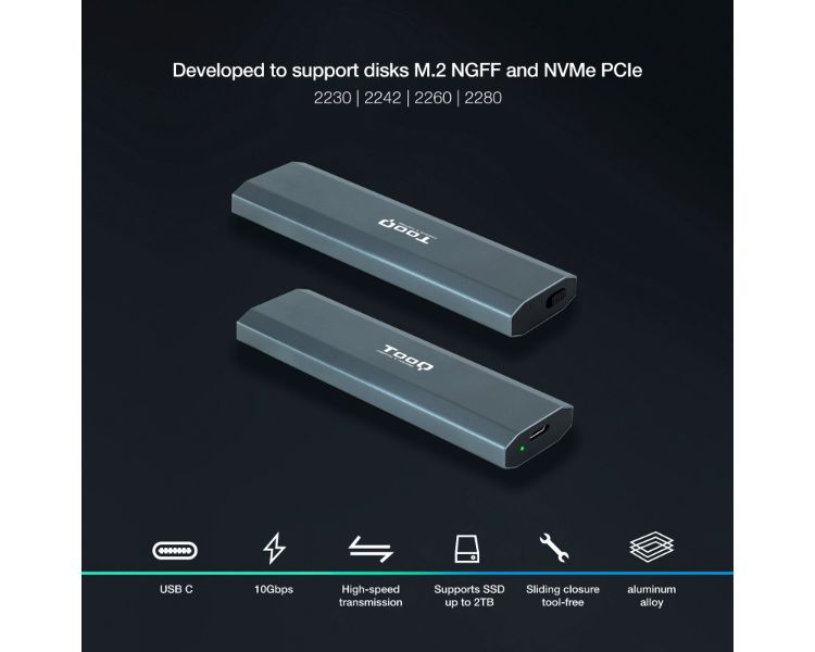 CAJA EXTERNA SSD NGFF/NVMe SHURA GRIS TOOQ