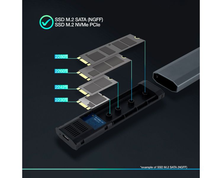 HASTA 2280/ USB-C/ SIN TORNILLOS/ ALUMINIO