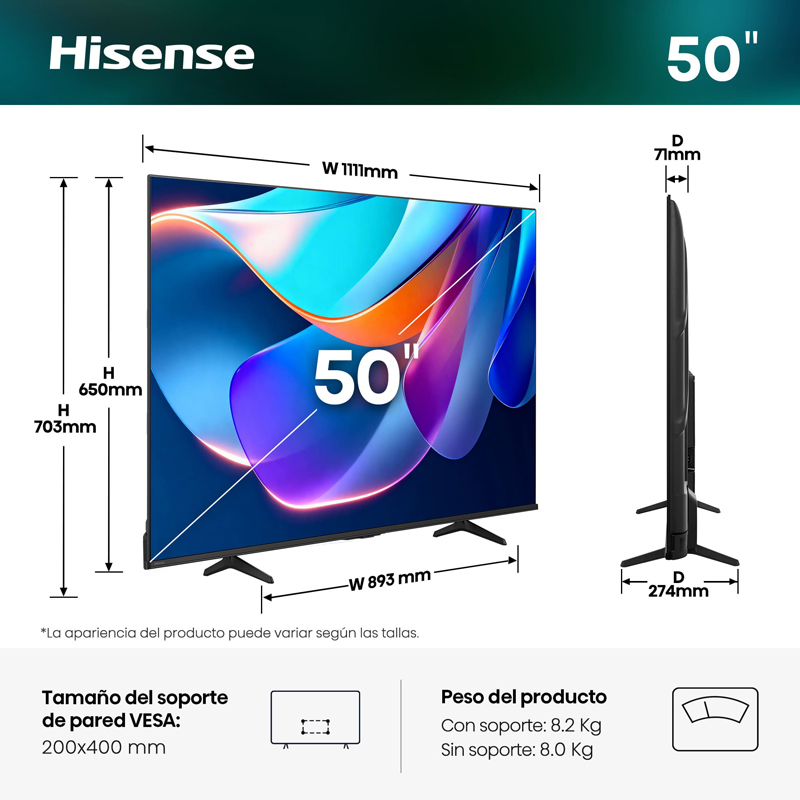TELEVISOR 50" UHD 4K 50A6S SMART TV HISENSE